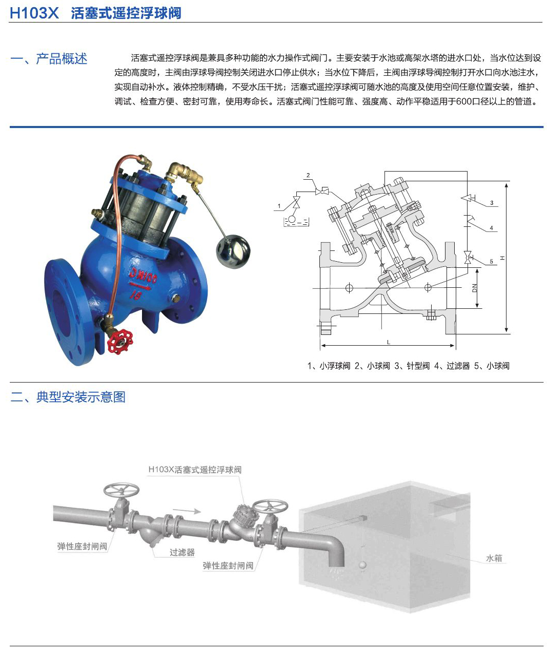 - 活塞式遙控浮球閥是兼具多種功能的水力操作式閥門。