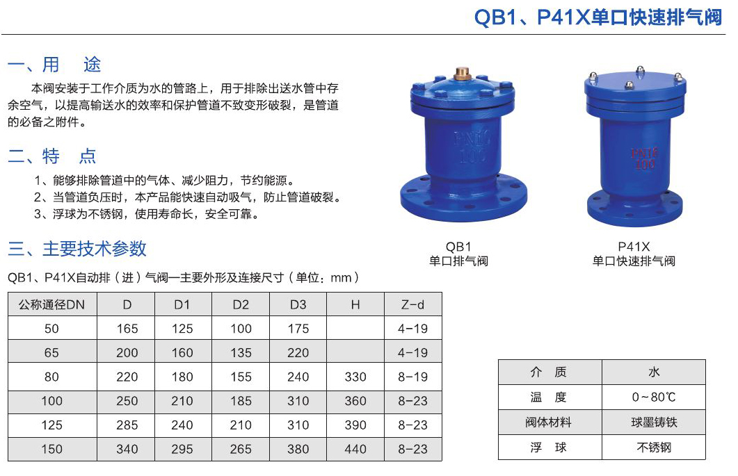 - 本閥安裝于工作介質(zhì)為水的管路上,用于排除出送水管中存余空氣,以提高輸送水的效率和保護管道不致變形破裂,是管道的必備之附件。