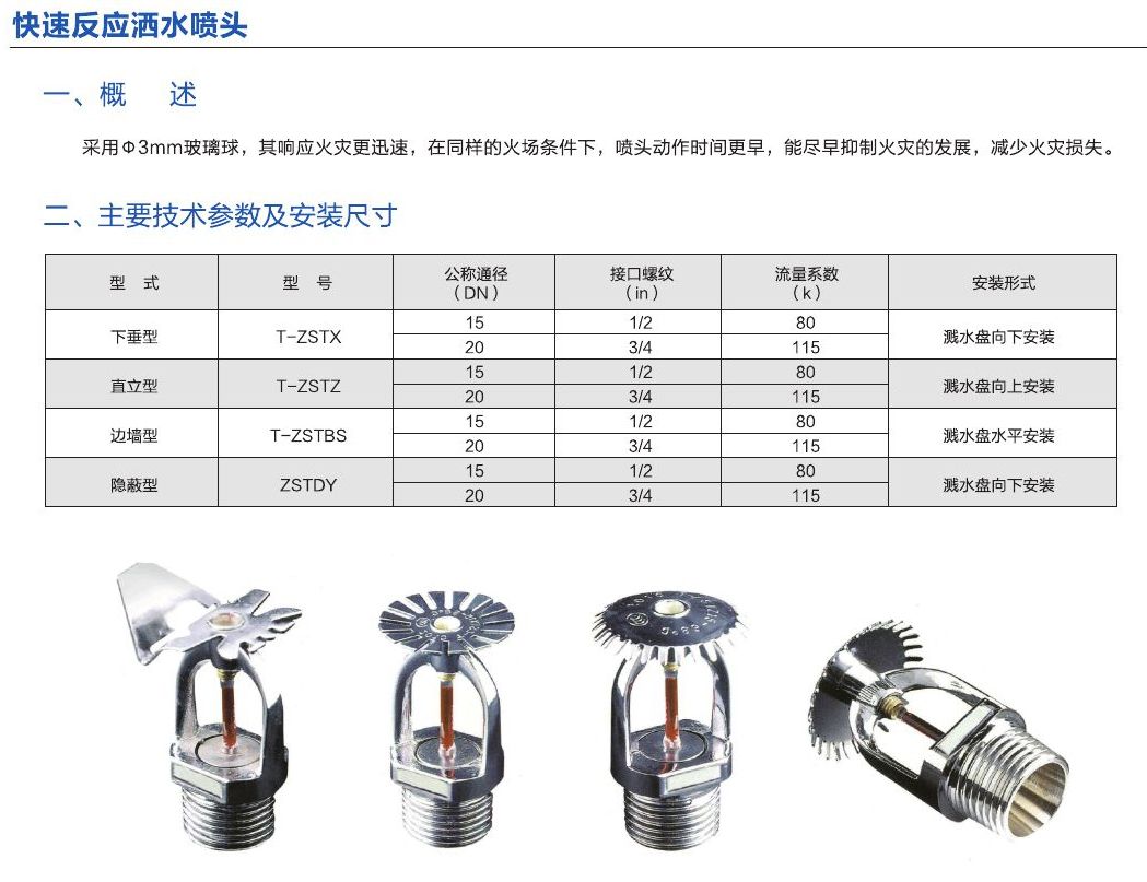 - 采用Ø3MM玻璃球,其響應(yīng)火災(zāi)更迅速,在同樣的火場條件下,噴頭動作時間更早,能盡早抑制火災(zāi)的發(fā)展,減少火災(zāi)損失。